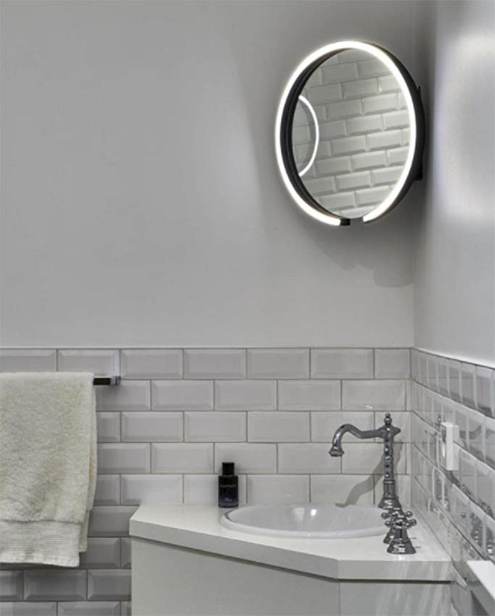 Deze variant van Mito sfera bestaat uit een spiegel en lamp in één geheel, wat zorgt voor een verblindingsvrije en fantastische verlichting van het gezicht.