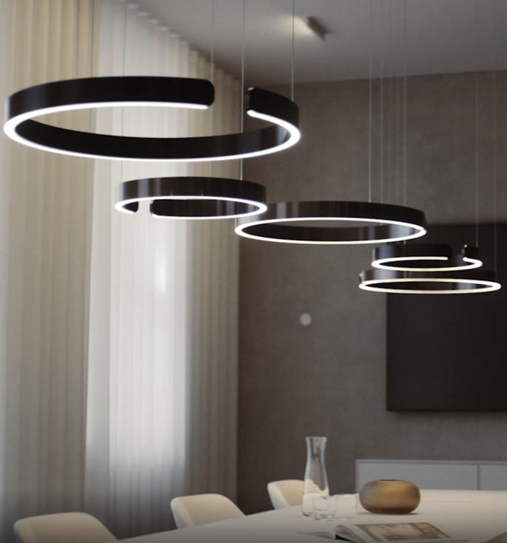 Super exclusieve, eenvoudige en elegante LED hanglamp met een diameter van 60 cm, met groot gebruiksgemak en top lichttechniek.