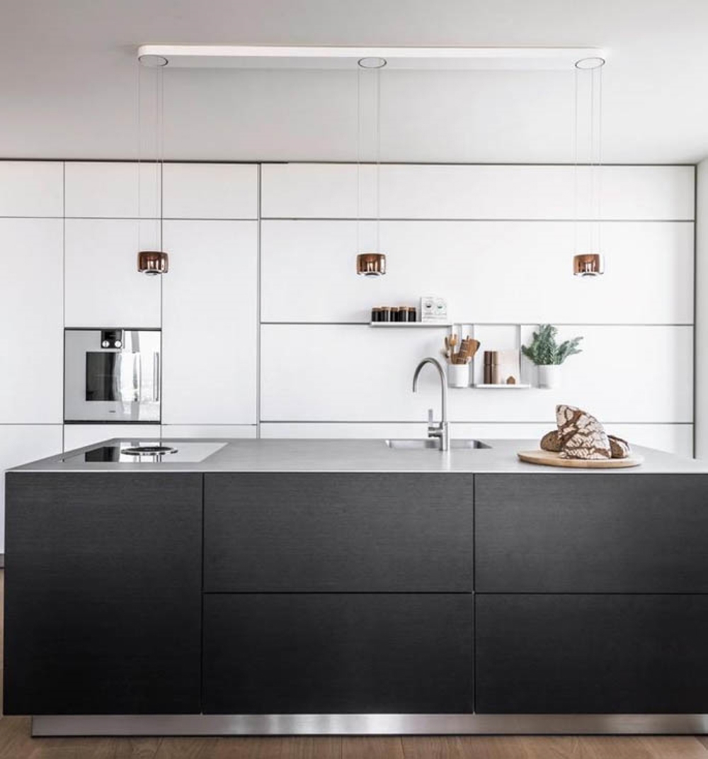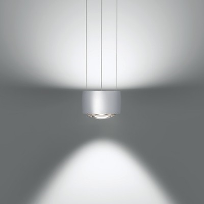 Occhio Sento Sospeso hanglamp heeft een variabele hoogte van 50-200 cm. Het licht kan eenvoudig worden gedimd en de verdeling op/af kan worden aangepast via »touchless control«.