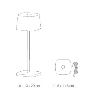 De stijlvolle tafellamp is een uitstekende keuze voor verlichting in zowel de woonkamer als op het terras en kan tot 9 uur branden op volle sterkte. Hij wordt opgeladen op de meegeleverde laadbasis. Een volledige oplading duurt ongeveer 6 uur en moet binnenshuis plaatsvinden.