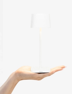 De batterijlamp Ofelia micro is een kleinere versie van de populaire draagbare tafellamp Ofelia. De kleine oplaadbare lamp is gemaakt van gegoten aluminium en kan dankzij zijn IP65-classificatie zowel binnen als buiten worden gebruikt. De batterijlamp is gemakkelijk mee te nemen en kan worden gedimd om de lichtsterkte aan te passen aan de gewenste sfeer via een touch-functie bovenop de kap. Hier kan ook de kleurtemperatuur worden gekozen: 2200K, 2700K of 3000K. Een geheugenfunctie onthoudt de instellingen wanneer de lamp weer wordt ingeschakeld.