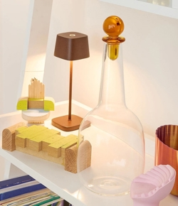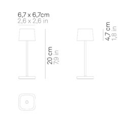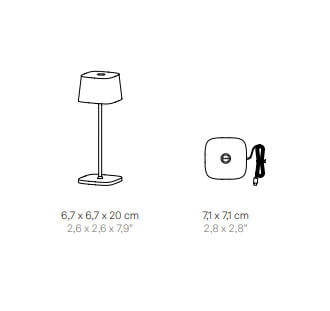 De batterijlamp Ofelia micro is een kleinere versie van de populaire draagbare tafellamp Ofelia. De kleine oplaadbare lamp is gemaakt van gegoten aluminium en kan dankzij zijn IP65-classificatie zowel binnen als buiten worden gebruikt. De batterijlamp is gemakkelijk mee te nemen en kan in sterkte worden gedimd, zodat het licht past bij de gewenste sfeer via een touch-functie bovenop de kap. Hier kan ook de kleurtemperatuur worden gekozen op 2200K, 2700K of 3000K. Een geheugenfunctie onthoudt de instellingen wanneer de lamp weer wordt ingeschakeld.