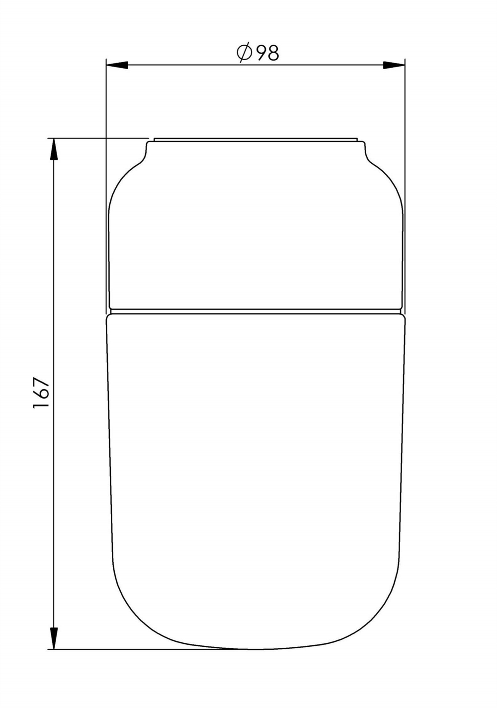 Afmetingen: Ø98 x H167 mm