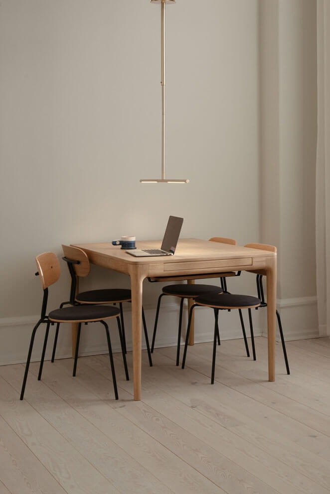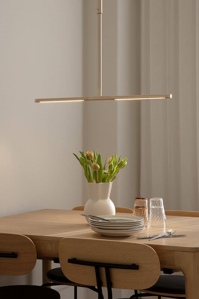Met Omni krijg je zowel vorm als functie met een eenvoudig visueel ontwerp, waardoor de lamp een voor de hand liggende keuze is als verlichting boven de eettafel.