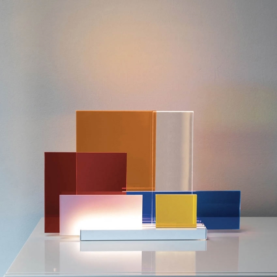 Het is mogelijk om de gekleurde platen in methacrylaat te herschikken, zodat je de lichtconfiguratie kunt bepalen.