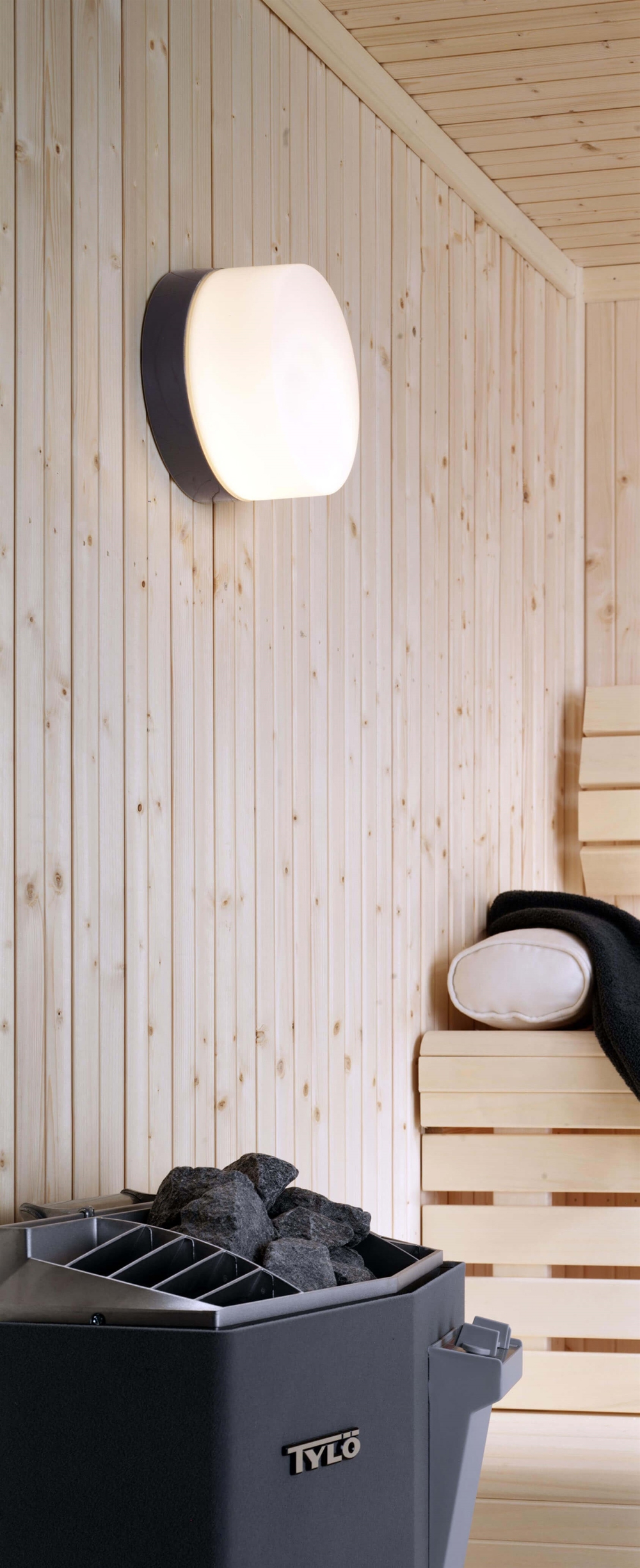 Inclusief saunalamp.