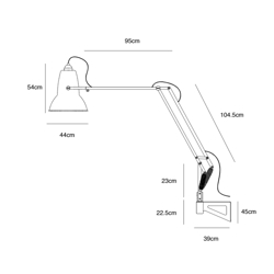 Anglepoise Original 1227 Giant wandlamp is ongelooflijk functioneel en indrukwekkend vanwege zijn grootte.
