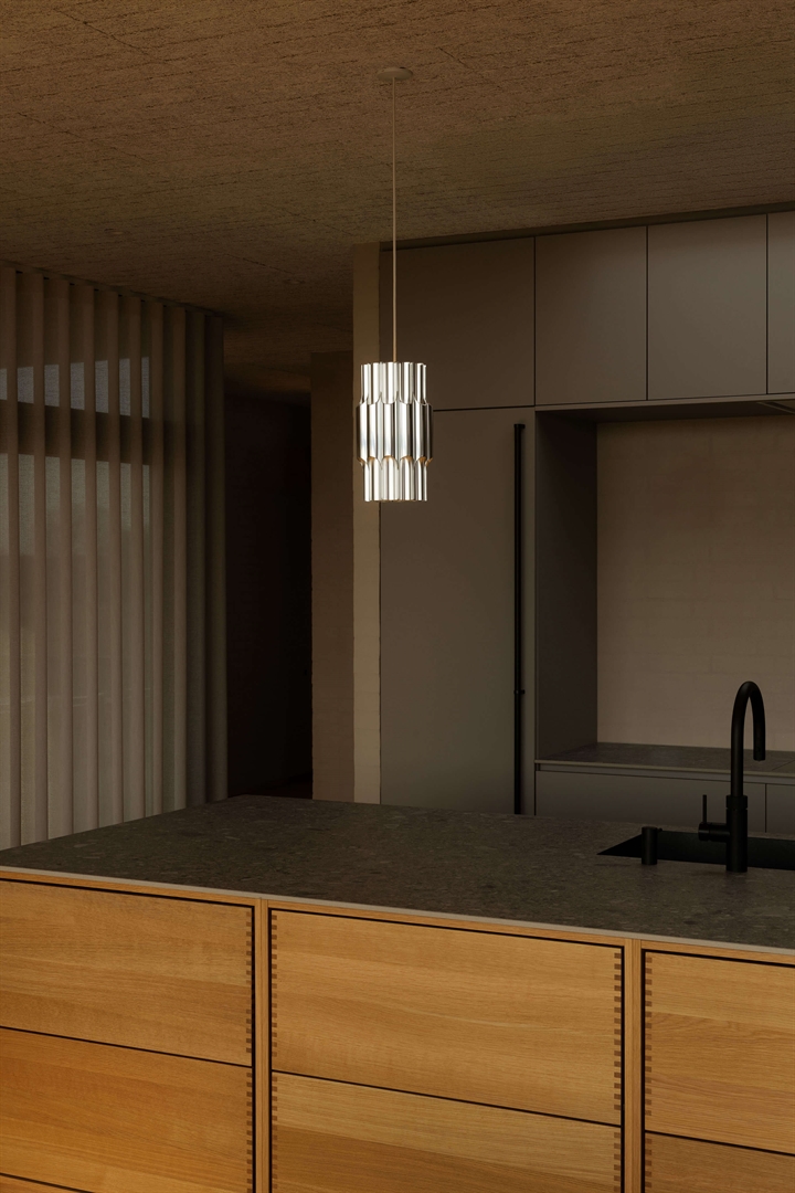 De iconische hanglamp bestaat uit 12 aluminium buizen, die prachtig worden verlicht door de open buizen. De lichtbuizen zorgen ervoor dat het licht zowel naar boven als naar beneden schijnt. Het opwaartse licht zorgt voor een subtiele omgevingsverlichting, terwijl het neerwaartse licht zorgt voor functionele en aangename verlichting.