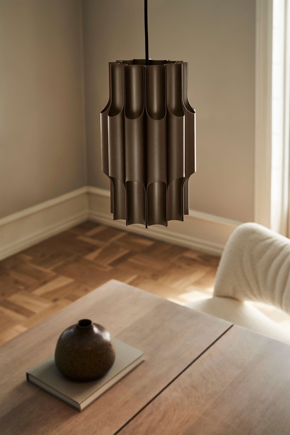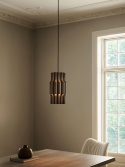 Hanglamp Pan 190 is een prachtig en decoratief ontwerp van Bent Karlby, geïnspireerd door de panfluit. Het ontwerp is opgebouwd uit glanzende lichtbuizen van geanodiseerd aluminium met een bronzen afwerking, die goed passen bij veel moderne interieurs.