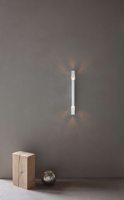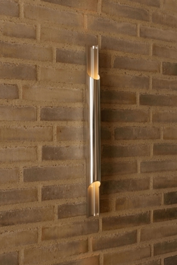 De wandlamp Pan 50 is een prachtig en decoratief ontwerp van Bent Karlby, geïnspireerd door de panfluit. De lamp creëert een mooi lichtspel op de muur via de openingen aan de boven- en onderkant van de glanzende lichtbuis in geanodiseerd aluminium. De twee lichtbronnen zorgen voor een gelijkmatig zacht licht van boven en onder.