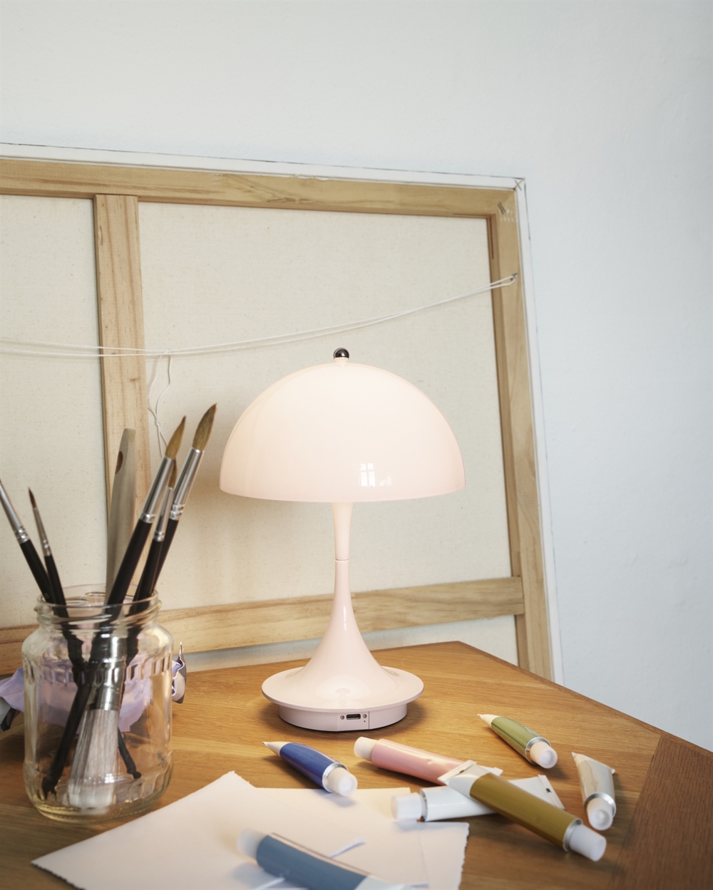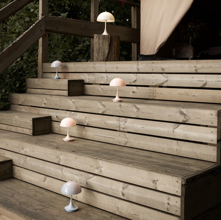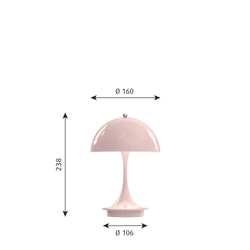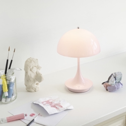 Louis Poulsen Panthella 160 Portable tafellamp / batterijlamp, lichtroze acryl - ontworpen door Verner Panton