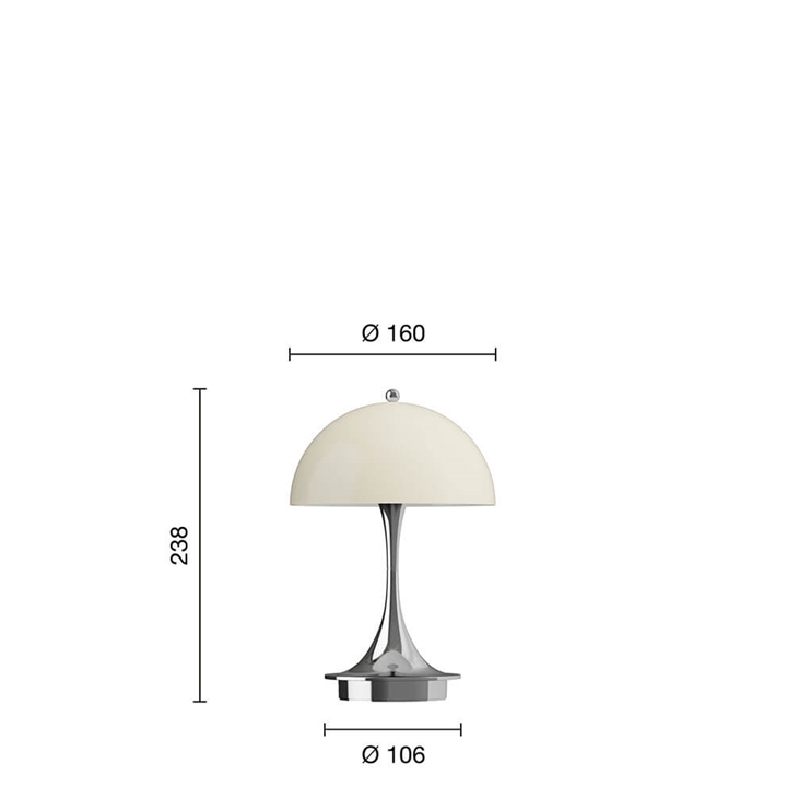 Louis Poulsen Panthella 160 Portable V3 tafellamp/batterijlamp, chroom/beige opaal - ontworpen door Verner Panton