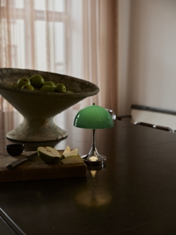 Louis Poulsen Panthella 160 Portable V3 tafellamp/batterijlamp, chroom/origineel groen opaal - ontworpen door Verner Panton