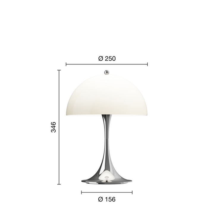 Louis Poulsen Panthella 250 Portable V3 tafellamp/batterijlamp, chroom/beige opaal - ontworpen door Verner Panton