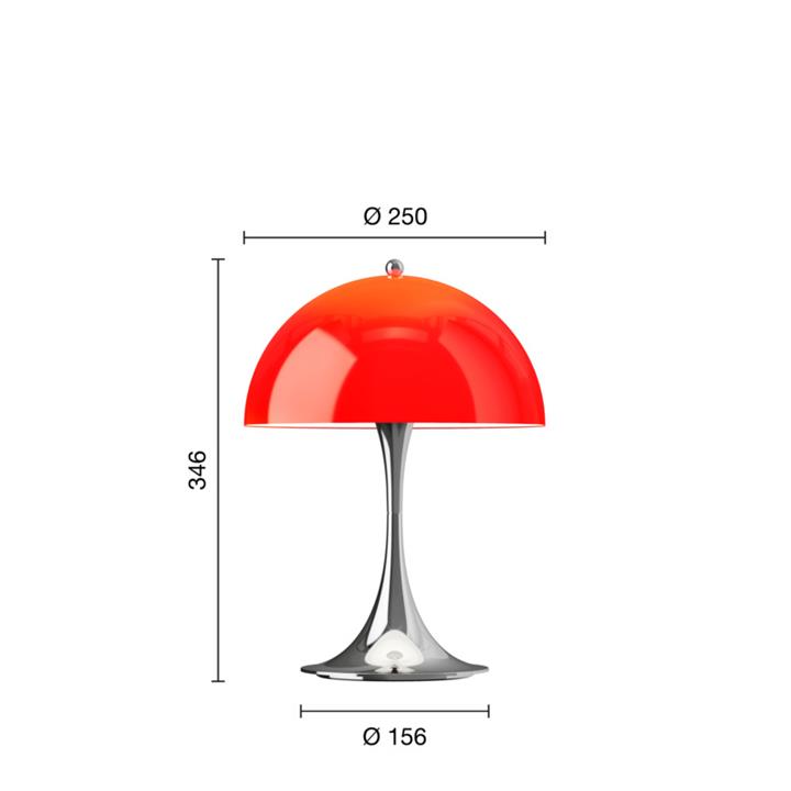 Louis Poulsen Panthella 250 Portable V3 tafellamp/batterijlamp, chroom/origineel rood opaal - ontworpen door Verner Panton