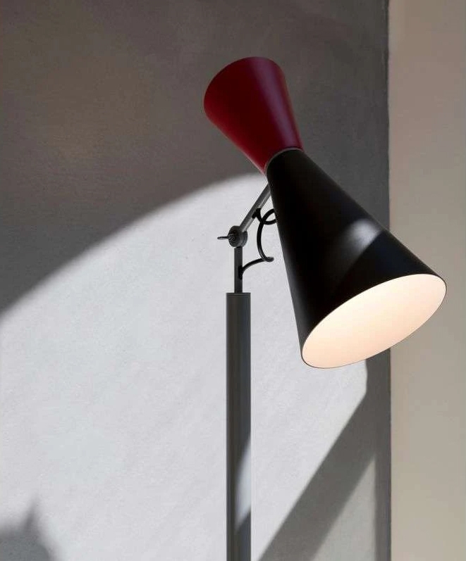 Parliament vloerlamp van Nemo ontworpen door Le Corbusier, zwart/rood