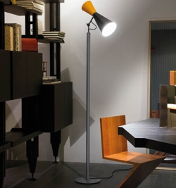 Parliament vloerlamp van Nemo ontworpen door Le Corbusier, zwart/geel