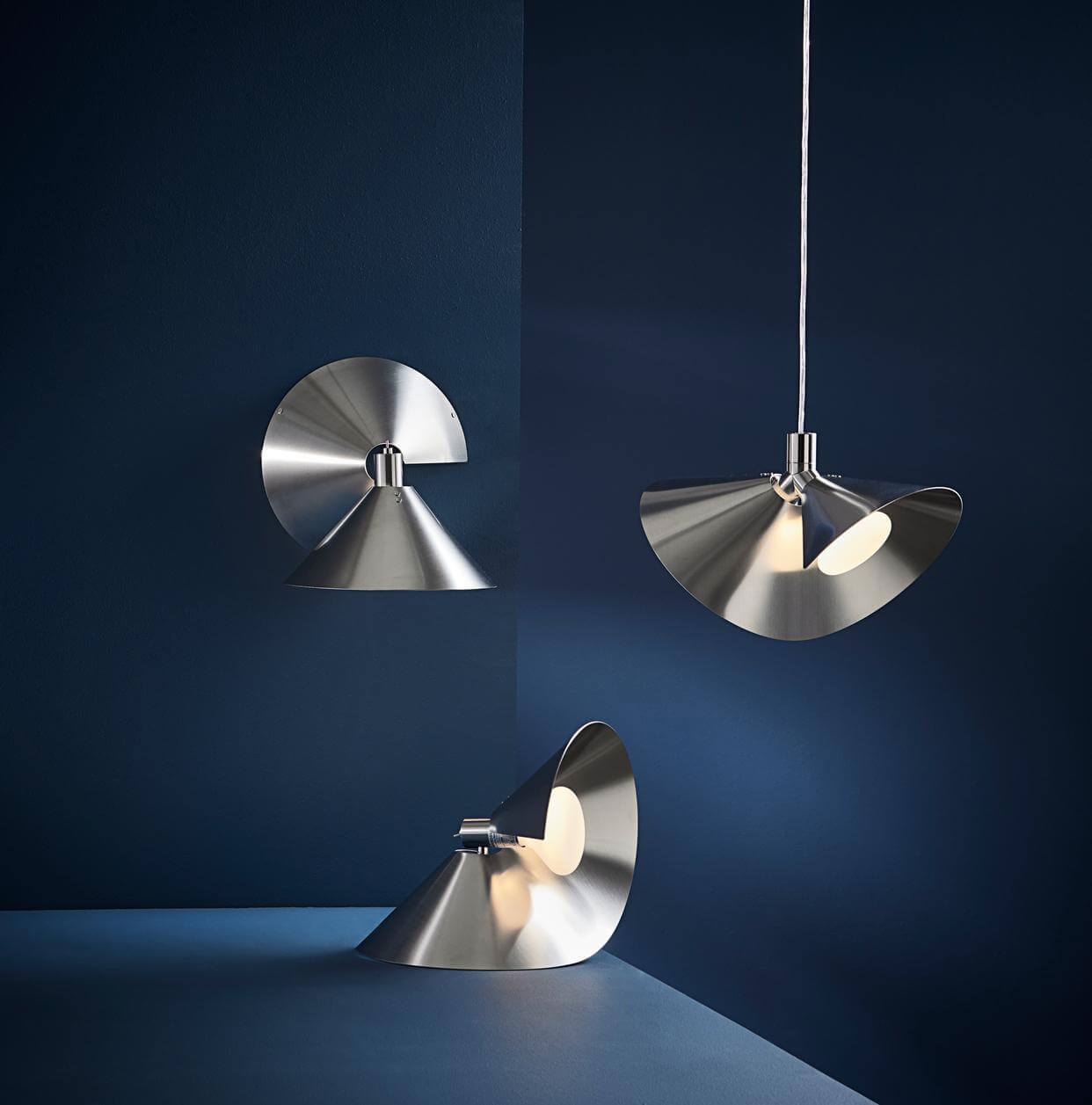 Peel is verkrijgbaar als hanglamp, tafellamp en wandlamp, die voordelig gecombineerd kunnen worden om een geheel in de inrichting te creëren.