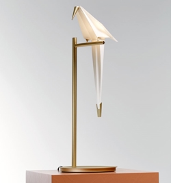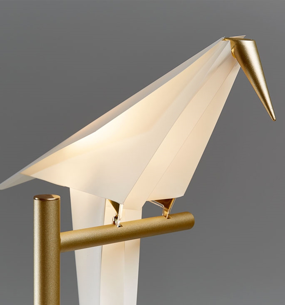 De Perch Light tafellamp bestaat uit 1 abstracte vogel op een tak, die een prachtige gloed aan de ruimte geeft. Als je de vogel zachtjes aanraakt, kan hij schommelen, wat hem nog meer tot leven brengt.