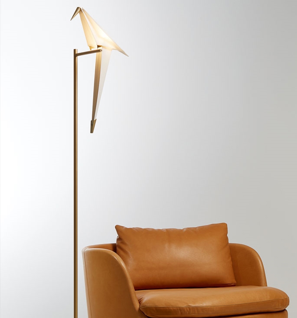De Perch Light vloerlamp bestaat uit 1 abstracte vogel op een hoge tak, die een prachtige gloed aan de ruimte geeft. Als je de vogel zachtjes aanraakt, kan hij gaan schommelen, wat hem nog meer tot leven brengt