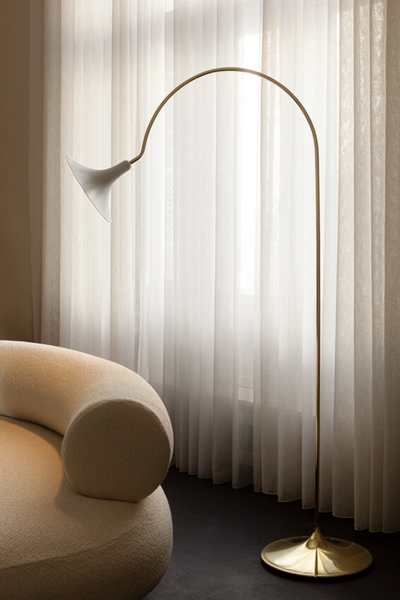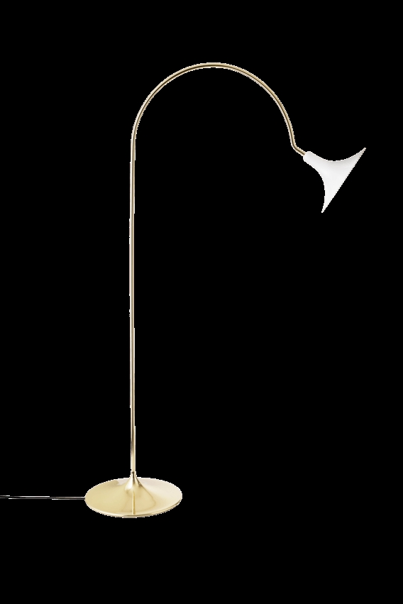 Nuura Petalii vloerlamp, gepolijst messing/wit – Ontworpen door Nika Zupanc.
