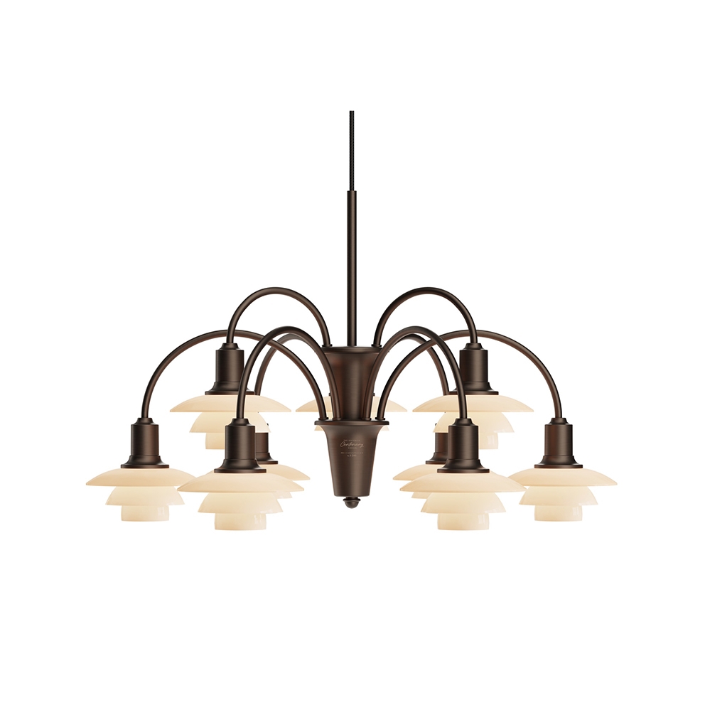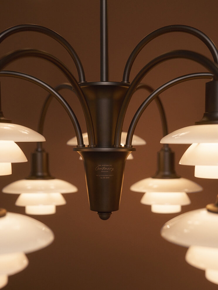 De unieke PH 1/1 Centenary Edition 9-armige kroonluchter is een Limited Edition-variant van de iconische Bombardement-kroonluchter ontworpen door Poul Henningsen. De kroonluchter werd voor het eerst getoond in de Louis Poulsen-catalogus in 1933 en is door de jaren heen verkrijgbaar geweest in verschillende uitvoeringen.