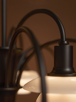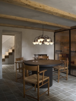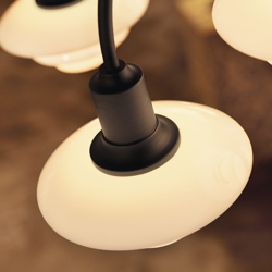 De PH 1/1 Centenary Edition kroonluchter verspreidt een warm en rustig zacht licht in de ruimte en past met zijn retro-uitstraling perfect in zowel klassieke als moderne interieurs. De kappen in het stoffige oranjebruine dustry terracotta zijn van mondgeblazen vierlaags glas en hebben glanzende bovenzijden en gezandstraalde witte onderzijden. De ophanging met afwerking in gebruneerd messing is deels gegoten, geëxtrudeerd en geperst. Elk onderdeel is voorzichtig geborsteld om een structuur met haarfijne lijnen te creëren. Het ruwe messing is zorgvuldig gepatineerd om het oppervlak donkerder te maken en daarna gelakt om de uitstraling te behouden.