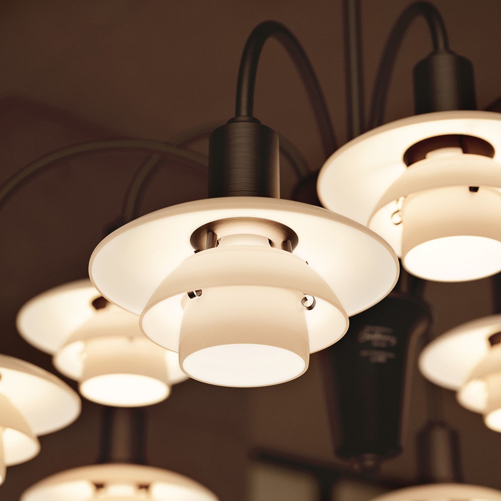 Het PH-lampnummer verwijst naar de grootte van de lampenkappen. PH 1/1 is de kleinste kappenset in System PH en heeft een bovenkap van ca. 16 cm. De kroonluchters in PH Centenary Edition zijn Louis Poulsens eerste herintroductie van de kappenset.