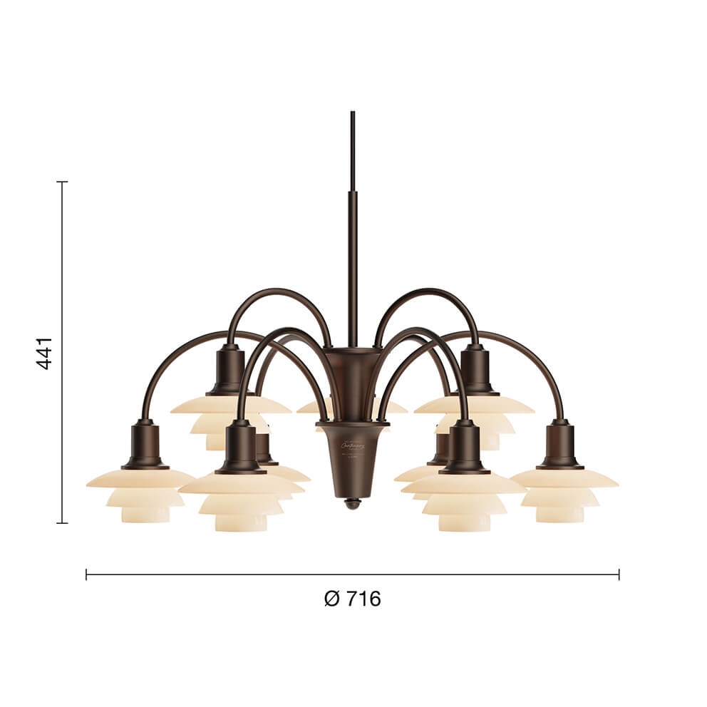 PH 1/1 kroonluchter Centenary Edition m/9 armen, aged brass/dusty terracotta
