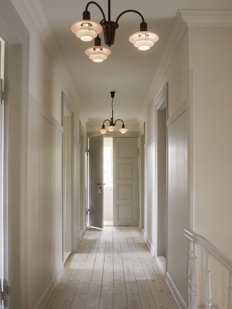 PH 1/1 Centenary Edition kroonluchter zendt een warm en rustig zacht licht de ruimte in en past met zijn retro-uitstraling perfect in zowel klassieke als moderne interieurs. De kappen in de stoffige oranjebruine dustry terracotta zijn van mondgeblazen vierlaags glas en hebben glanzende bovenzijden en gezandstraalde witte onderzijden. De ophanging met afwerking in gebruneerd messing is deels gegoten, geëxtrudeerd en geperst. Elk onderdeel is voorzichtig geborsteld om een structuur met flinterdunne lijntjeste creëren. Het ruwe messing is zorgvuldig gepatineerd om het oppervlak te verdonkeren en daarna gelakt om de uitstraling te behouden.
