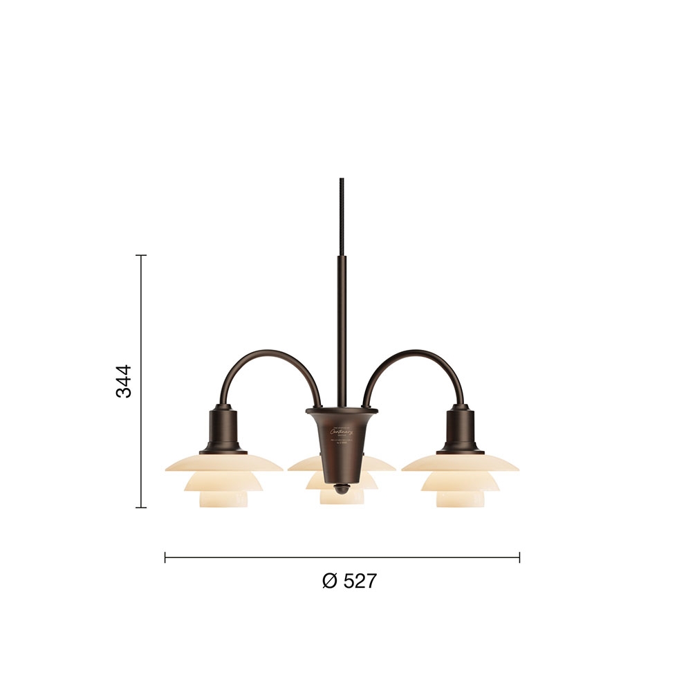 De unieke PH 1/1 Centenary Edition 3-armige kroonluchter is een Limited Edition-variant van de iconische Bombardement-kroonluchter ontworpen door Poul Henningsen. De kroonluchter werd voor het eerst getoond in de Louis Poulsen-catalogus in 1933 en is gedurende de jaren verkrijgbaar geweest in verschillende uitvoeringen.