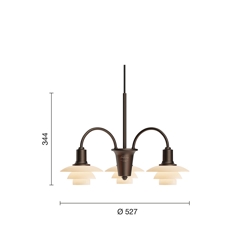 PH 1/1 kroonluchter Centenary Edition m/3 armen, aged brass/dusty terracotta