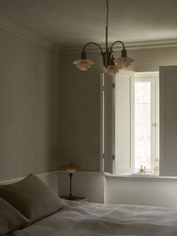 Deze Centenary Edition van de lamp in gelakt aged brass met glazen kappen in dusty terracotta is in 2026 geïntroduceerd om het 100-jarig jubileum te markeren van Poul Henningsens driekappensysteem uit 1926. Het systeem - dat ook bekendstaat als System PH - is opgebouwd uit drie kappen die tot veel verschillende lampen kunnen worden gecombineerd en zorgt voor een volledig verblindingsvrije verdeling van het licht.