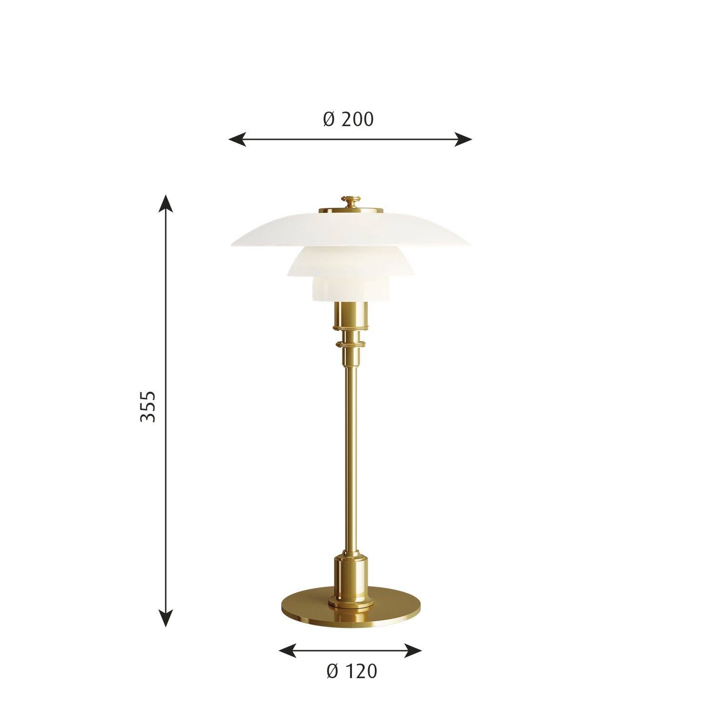 Louis Poulsen PH 2/1 tafellamp, messing - ontworpen door Poul Henningsen