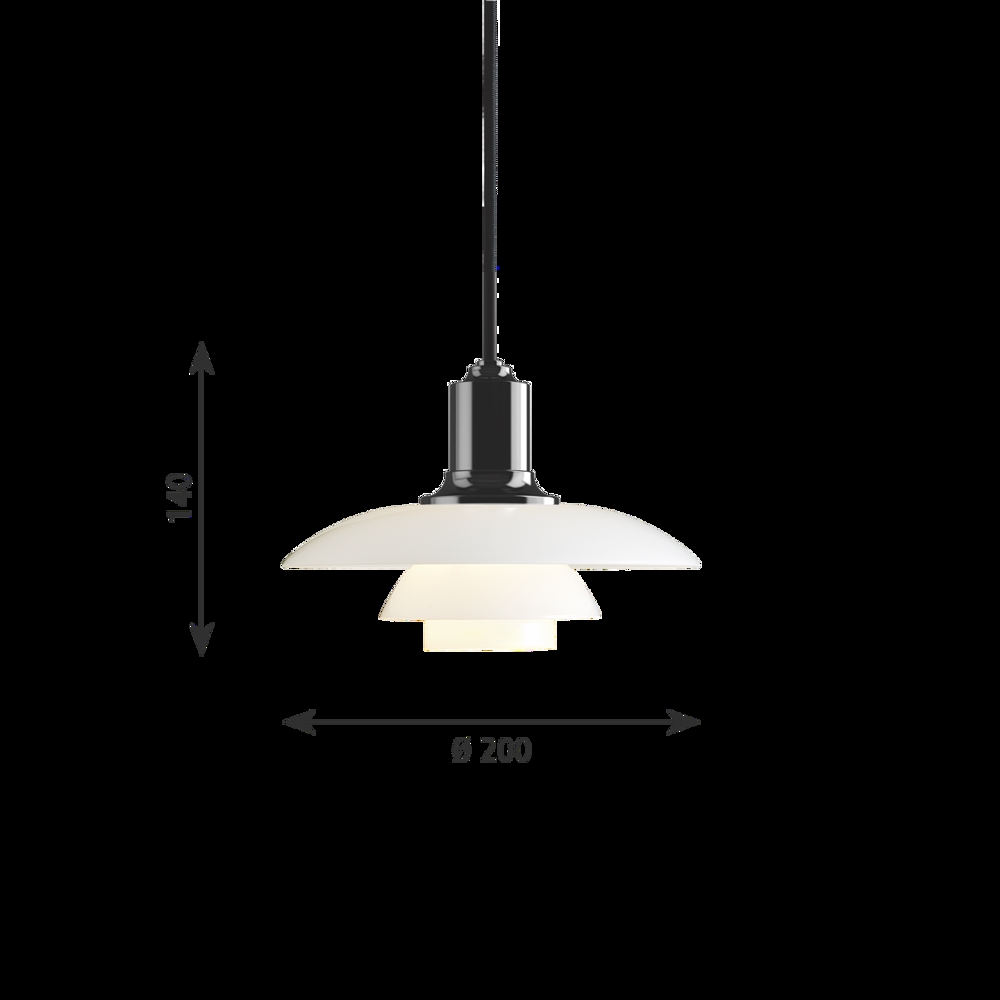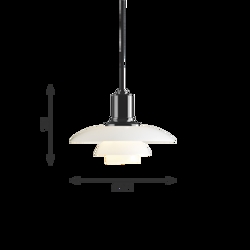 De unieke PH 2/1 hanglamp geeft een zacht en harmonieus licht dankzij het mondgeblazen witte opaalglas in drie lagen, dat het licht voornamelijk naar beneden richt.