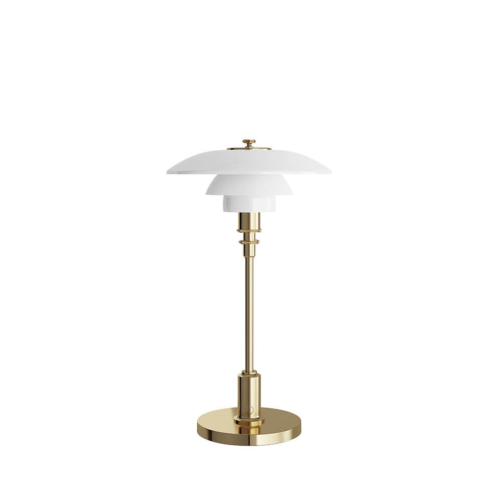Louis Poulsen PH 2/1 draagbare tafellamp/batterijlamp, messing - ontworpen door Poul Henningsen
