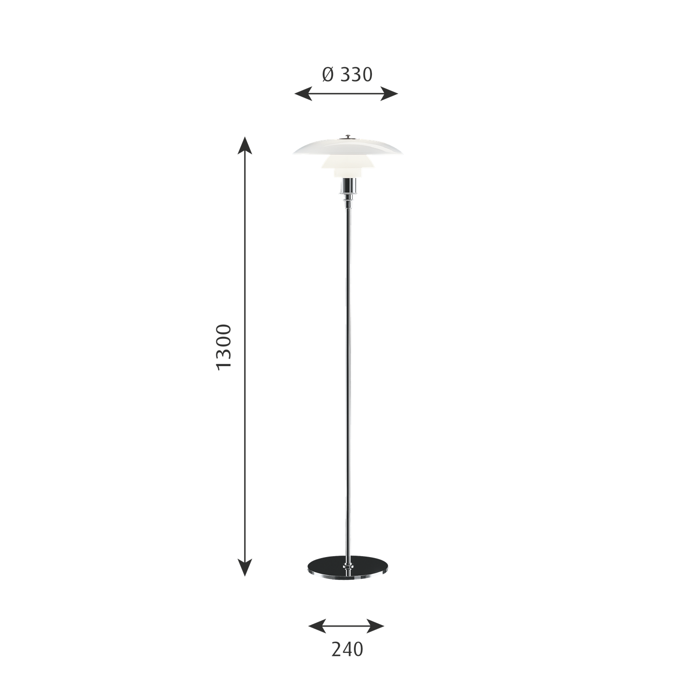 Louis Poulsen PH 3½-2½ vloerlamp, chroom - ontworpen door Poul Henningsen.