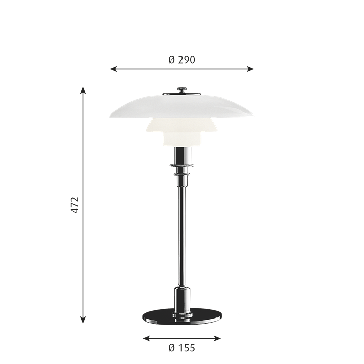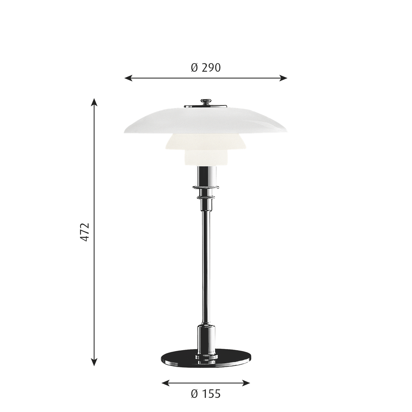 Louis Poulsen PH 3/2 tafellamp, chroom - ontworpen door Poul Henningsen.