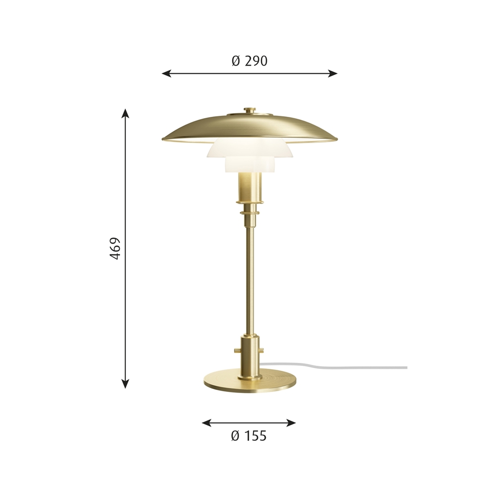 Louis PoulsenPH 3/2 Limited Edition tafellamp, messing/opal - ontworpen door Poul Henningsen.