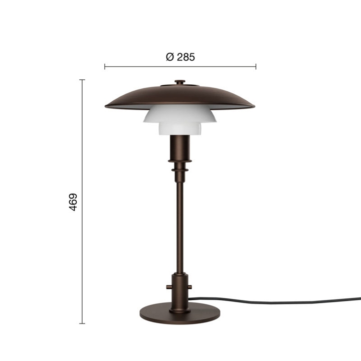 Het PH-lampnummer verwijst naar de grootte van de lampenkappen. Daarom bestaat PH 3/2 tafellamp uit een bovenkap van ca. 30 cm en onderkappen van de 2/2-versie.