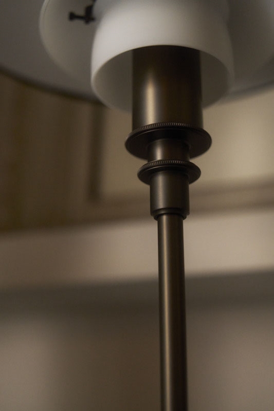 De lampen in de Aged Brass-collectie zijn allemaal gebaseerd op Poul Henningsens iconische driekapssysteem, dat teruggaat tot 1926. De lagen van de kappen zorgen ervoor dat het licht naar beneden wordt gericht en tegelijkertijd verblindingsvrij en gedempt in de ruimte verschijnt.