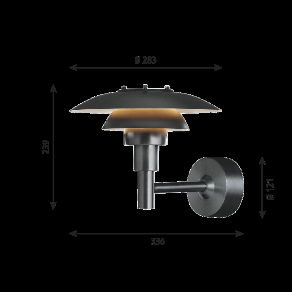 Louis Poulsen PH 3-2½ buiten wandlamp, zwart - ontworpen door Poul Henningsen.