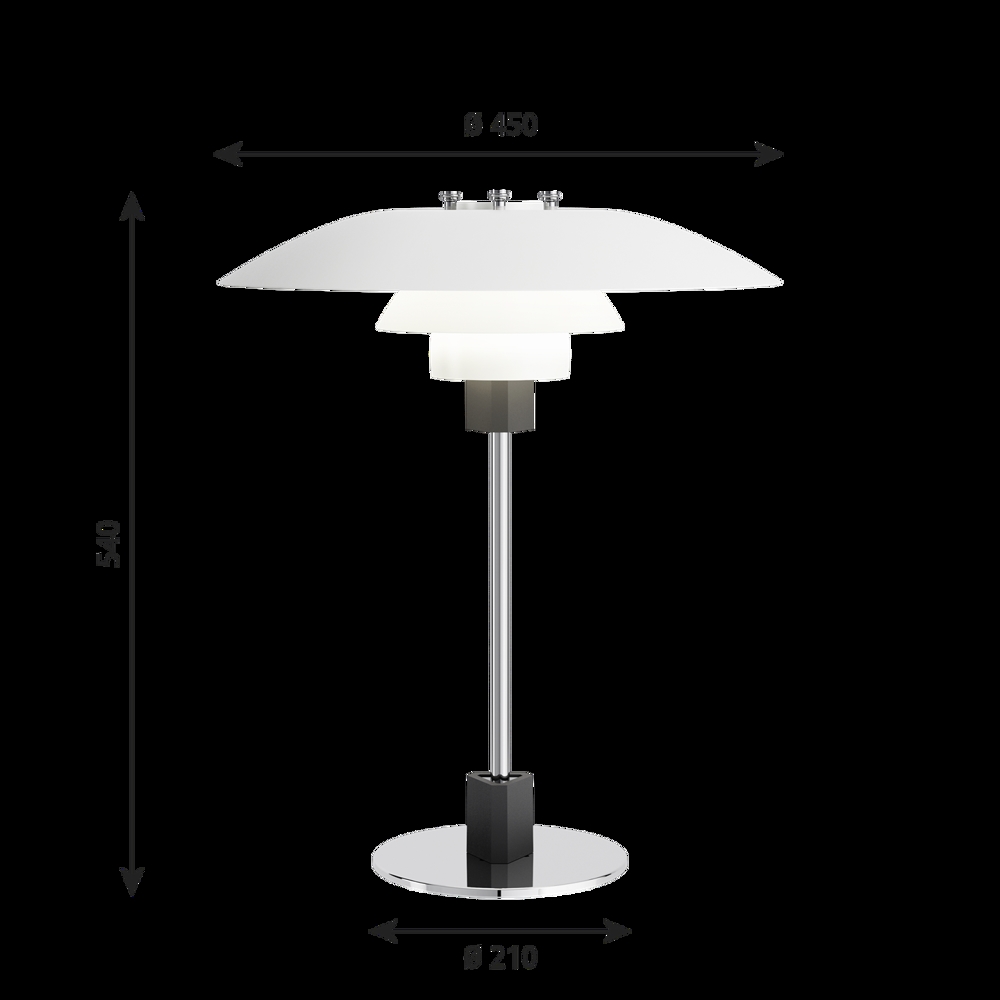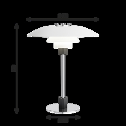 Het PH-lampnummer verwijst naar de grootte van de lampenkappen. Daarom bestaat de tafellamp uit een bovenkap van ca. 40 cm en onderkappen van de 3/3-versie.