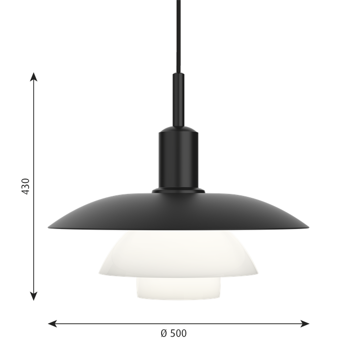De elegante hanglamp is ongelooflijk veelzijdig en past zowel in klassieke als moderne interieurs. PH 5/5 heeft een fitting in matzwart poedergecoat gegoten zink. PH 5/5 hanglamp is ook verkrijgbaar met volledig matzwarte metalen schermen.