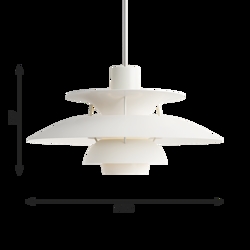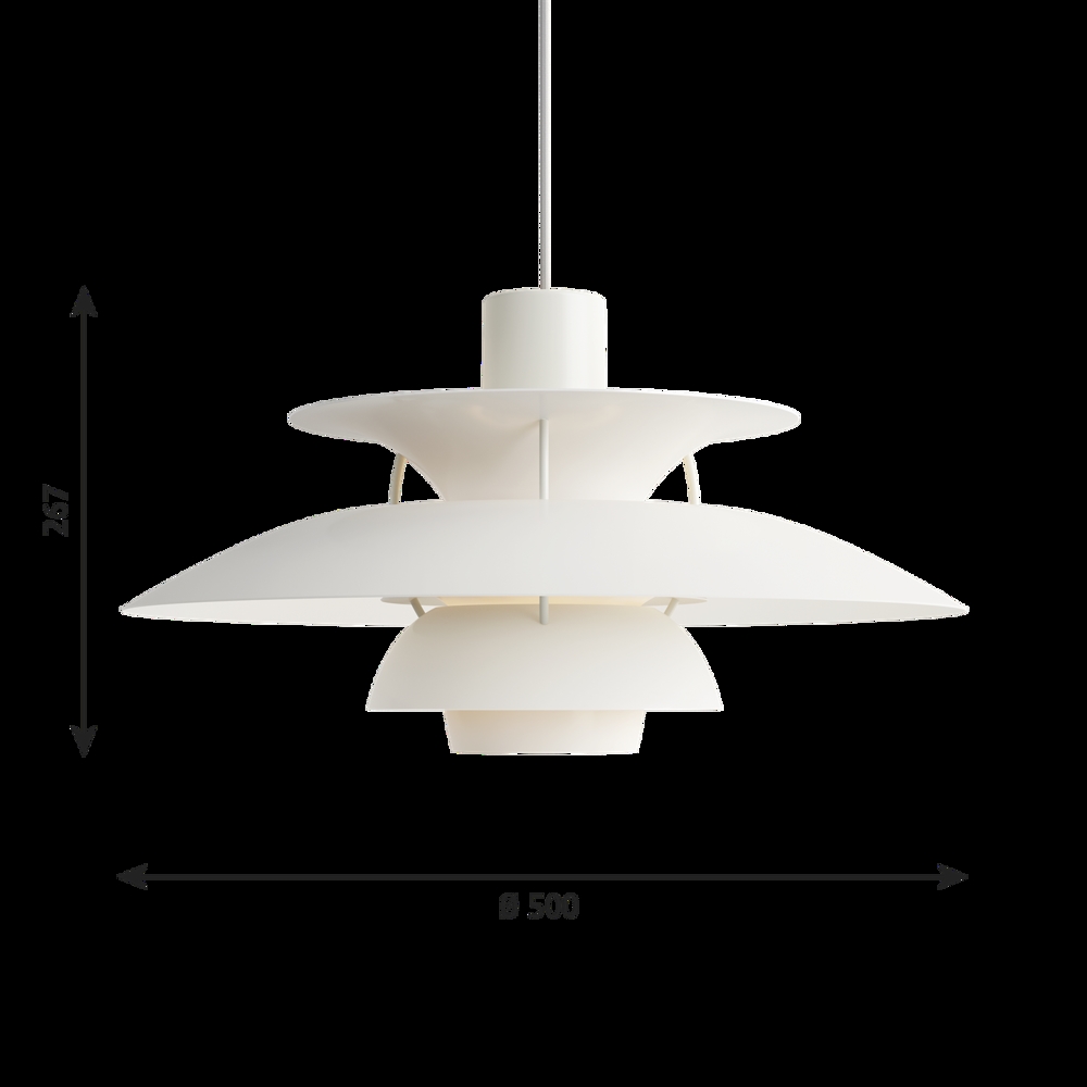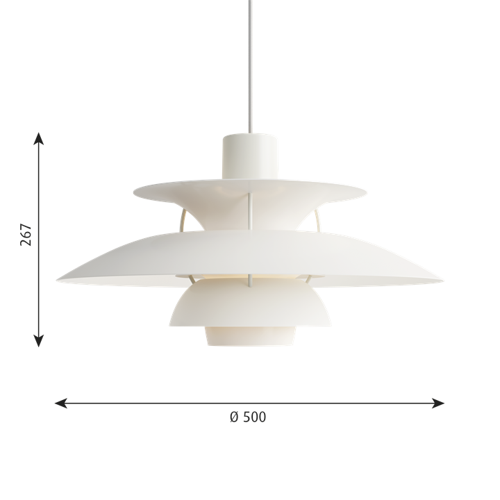 Het PH-lampnummer verwijst naar de grootte van de lampenkappen. Daarom bestaat de PH 5 hanglamp uit een bovenscherm van ca. Ø50 cm.