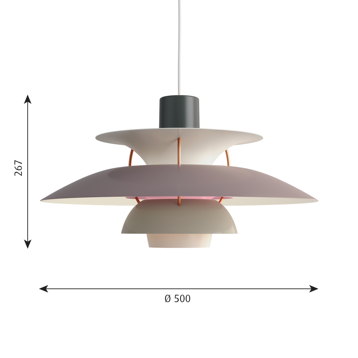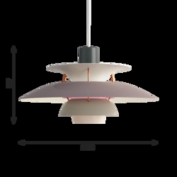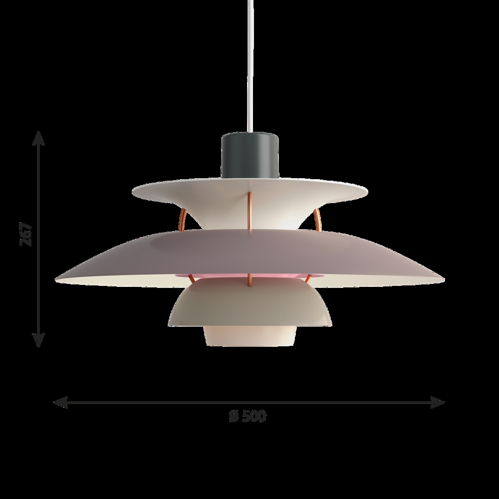 Het PH-lampnummer verwijst naar de grootte van de lampenkappen. Daarom bestaat de PH 5 hanglamp uit een bovenscherm van ca. Ø50 cm.