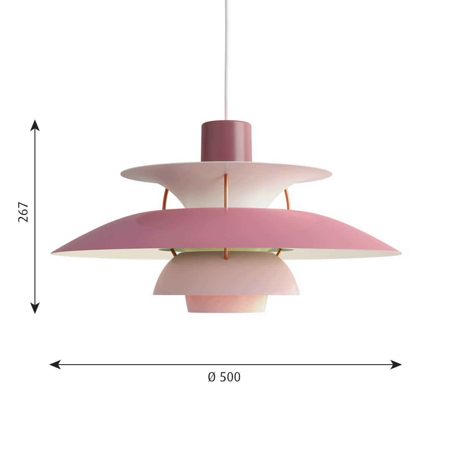 Louis Poulsen PH 5 hanglamp, hues of rose - ontworpen door Poul Henningsen.
