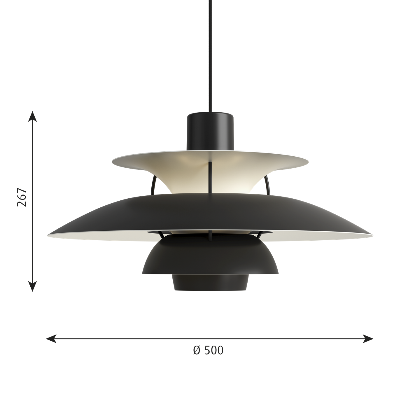 PH 5 hanglamp, monochroom zwart