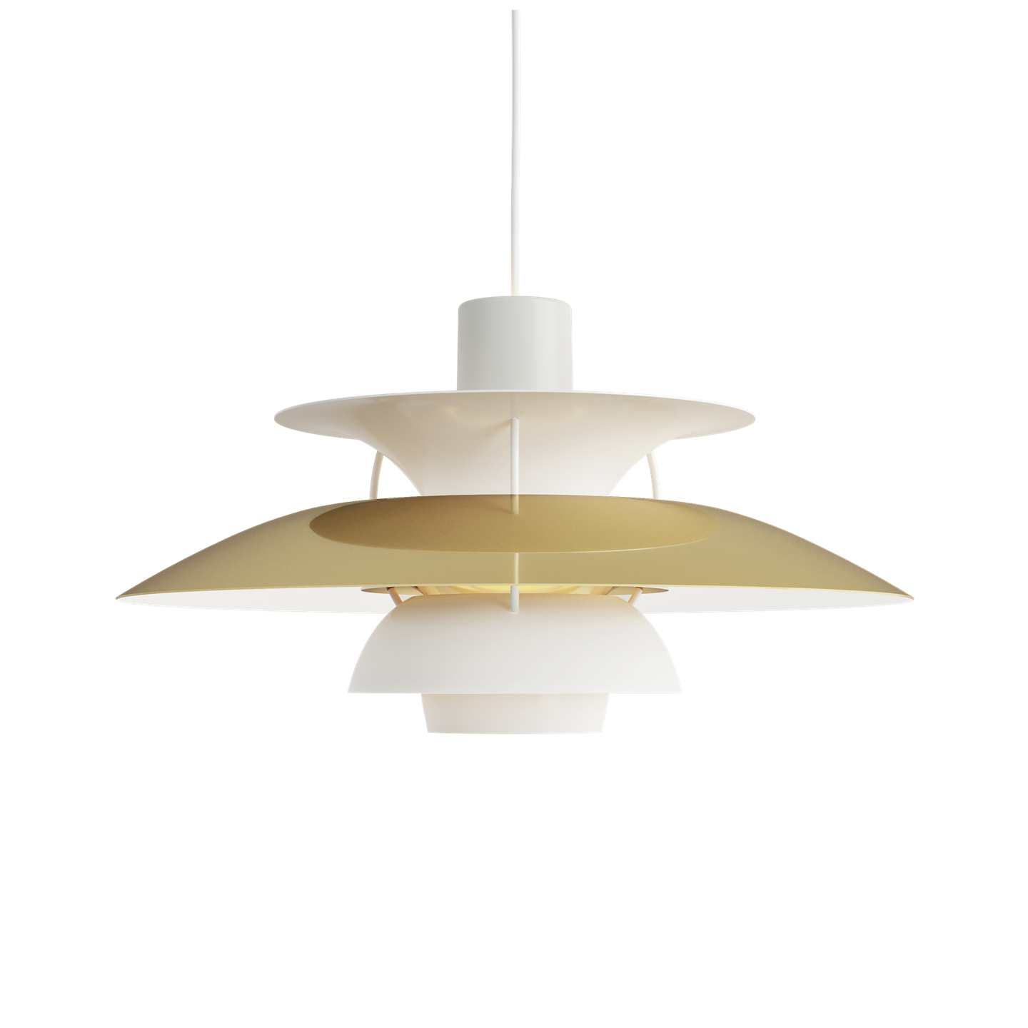 De PH 5 hanglamp is ontworpen op basis van Poul Henningsens iconische drievoudige schermsysteem uit 1925, dat zorgt voor een fantastische verblindingsvrije lichtverdeling.