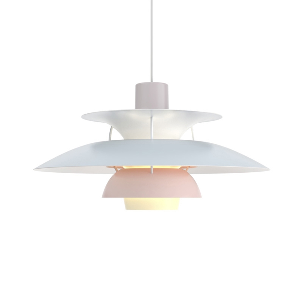 Louis PoulsenPH 5 hanglamp, pastel oyster grijs/blauw/roze - ontworpen door Poul Henningsen.